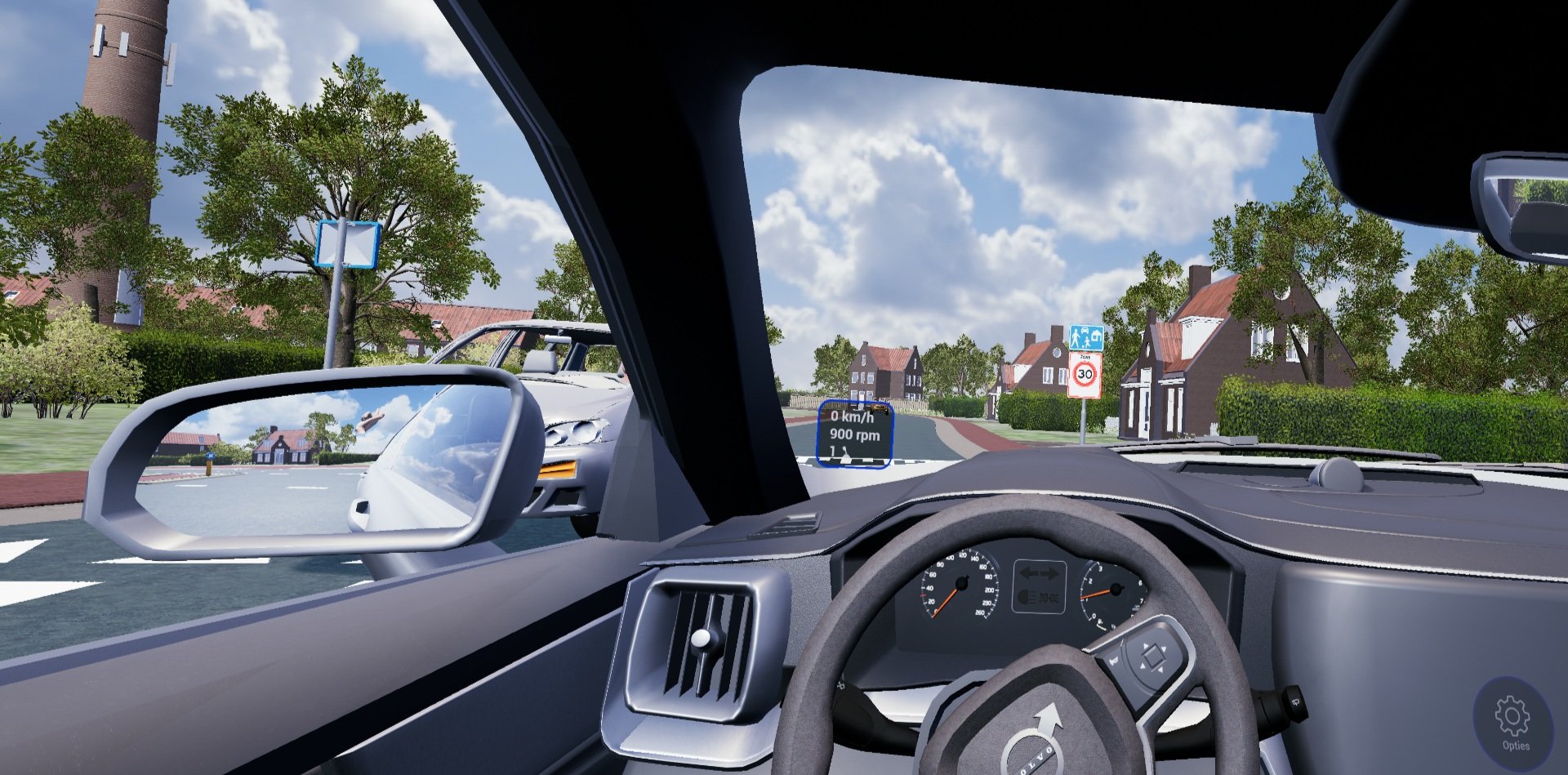 360° zicht in een virtuele auto. Je stapt volledig in een digitale wereld die aanvoelt als een echte autorit.